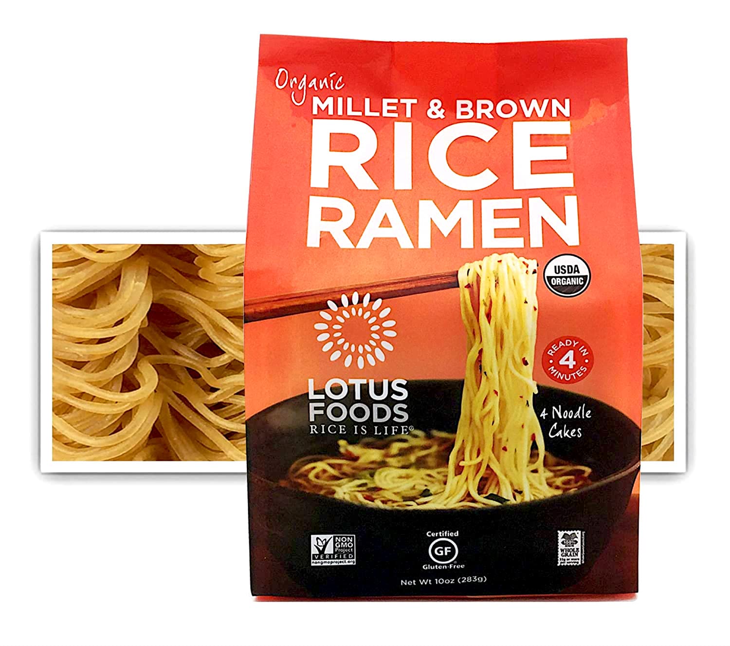 Rice and Millet Noodles (These tasty ones are available at most fancy grocery stores for ~$8 for 4 cakes, like Whole Foods & PCC. Any thin rice noodle in the Asian section at a grocery store will also work but have less calories.)